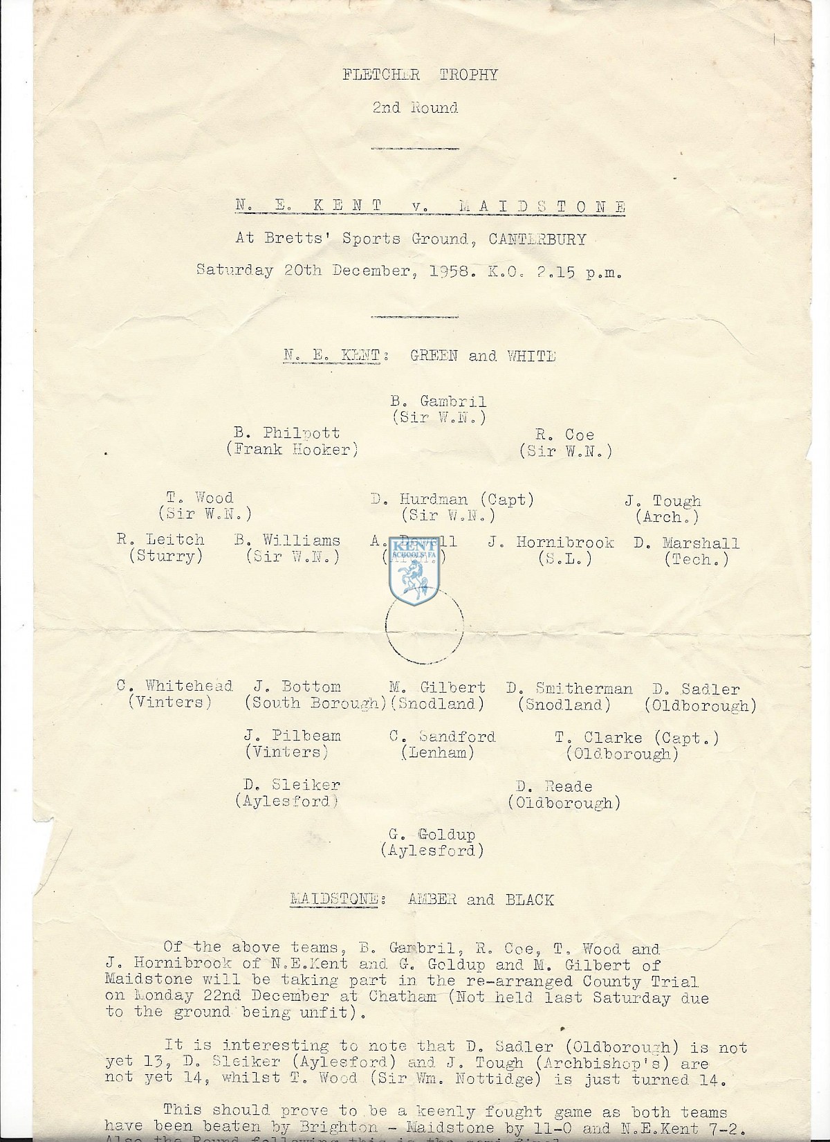 These are images of documents and photos from the years 1937 - 1959. These images can be ordered using our online service, however, please be aware that these are scans of documents collected over the years and the images may vary in quality when printed. If you require more information regarding any of these images please contact our General Secretary, Phil Harding at philksfa@gmail.com
